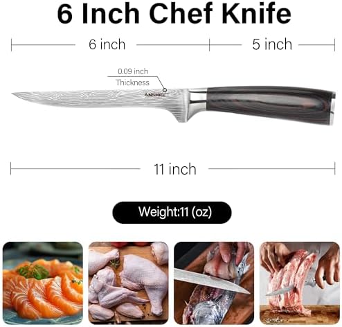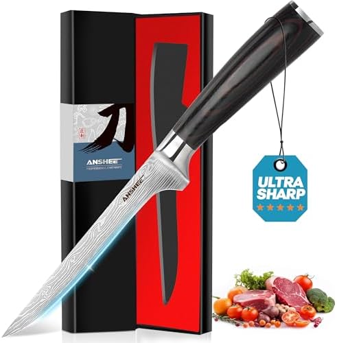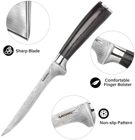 Sharp Edges: The blade of fish knife has been honed with 15-degree cut, demonstrating minimal slicing resistance and exceptional performance. This versatile trimming knife with water ripple is an economical tool suitable for skinning and boning meat with its flexible blade, providing the most comfortable cooking experience.