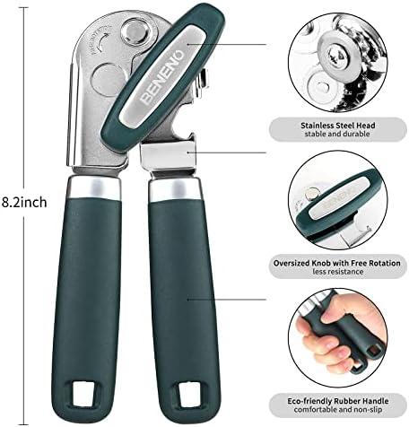 BENENO’s Improvement of Manual Can Opener – We use soft non-slip rubber in the handle and turn knob, which greatly improves the hand-held comfort of the manual can opener and avoids hand slipping when opening the can even if your hand is oiled. The knob with increased height and finger contact surface makes the hand more effortless when opening the can, and the knob can be twisted 360°in both directions, which is a great gift for the elderly and arthritis