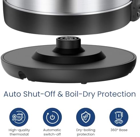 PRECISE & SAFE: With its professional thermostat technology, this electric tea kettle can automatically shuts off when overheating. Additionally, boil dry protection turns off the heating element when the kettle is empty.