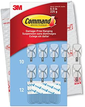 Command Clear Small Wire Hooks let you decorate and organize how you want, when you want, without damaging surfaces. These clear small wire toggle hooks blend into surfaces so you can showcase your decor, not how it’s hung. A great home improvement item, these no damage wall hooks stick on a variety of smooth surfaces without leaving holes, marks or residue. Use these hanging hooks to hang hats, calendars, keys, measuring spools, cleaning tools, jewelry and accessories. Mount these wall adhesive hooks on painted walls and more and enjoy the damage free hanging of your favorite small decorations and organizers. Perfect for home renovators and students, use these wall hooks for hanging decorations and organizers in your home, office or dorm to elevate the appearance of your living or working space without tools. Directions are included that show how to use the wall hangers. A clever decorating and organizing solution that doesn’t damage surfaces, these small wire tool free wall hangers will help you fearlessly change your space. One package contains 10 clear wire toggle hooks and 12 small adhesive strips. Each single wall hanger can hold up to 0.5 pounds. Decorate, organize and celebrate damage free with Command.