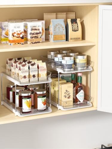 Upgraded Clear Acrylic Organizers: The kitchen cabinet organizer are Selected with high-end acrylic, aluminum alloy support rod, etc high-quality materials to Produce, so you can see the inside clearly and find the wanted stuff fast, An essential assistant for bathroom organization, and kitchen organizer and pantry storage, keeping toiletries and kitchen seasoning organized.