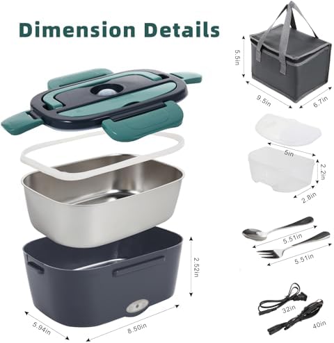 Easy-to-Carry Design: The electric lunch box features an ergonomically designed grip-style handle for comfortable carrying, alongside a thermal insulation bag that maintains the temperature of your food, ensuring it stays warm until you’re ready to eat.