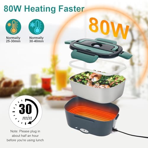 80W Rapid Heating: Engineered for efficiency, the self heating lunch box heats your food quickly and evenly with its 80W power, reducing heating time to just 25-40 minutes. Enjoy hot, delicious meals without the long wait.