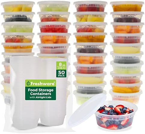 Freshware Food Storage Containers [50 Set] 8 oz Plastic Deli Containers
