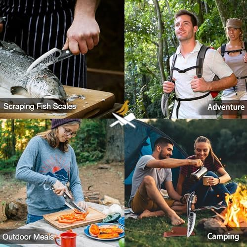 Unique Leather Sheath — The outdoor chef knife is equipped with a practical soft leather sheath to protect the blade. You can put a belt on it for easy carrying when camping outdoor. The portable camping knife is your ideal assistant for Butchering, Fishing, Camping, and Outdoor BBQ activities.