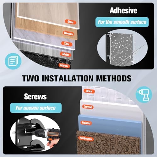 TWO INSTALLATIONS METHODS: Hat Rack for wall can be installed in two ways: self-adhesive and screw drilled holes. You can choose the appropriate method according to the usage scenario. Note: Due to the firm sticking, please confirm the direction and position before sticking, the part of the wall plate with holes is the top to avoid forming repeated tears