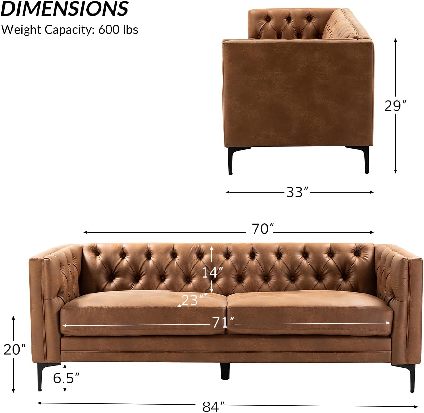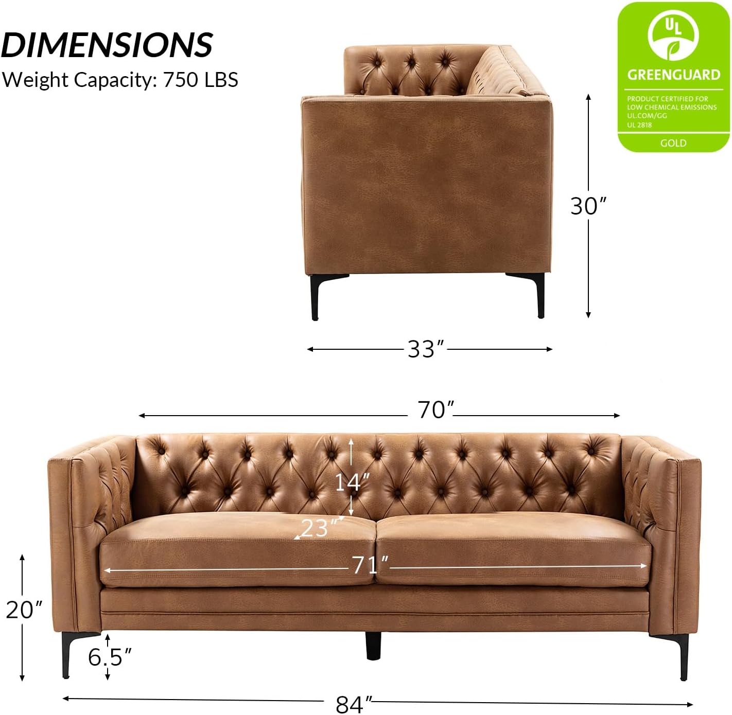 HULALA HOME 84″ W Faux Leather Sofa Couch with Metal Legs