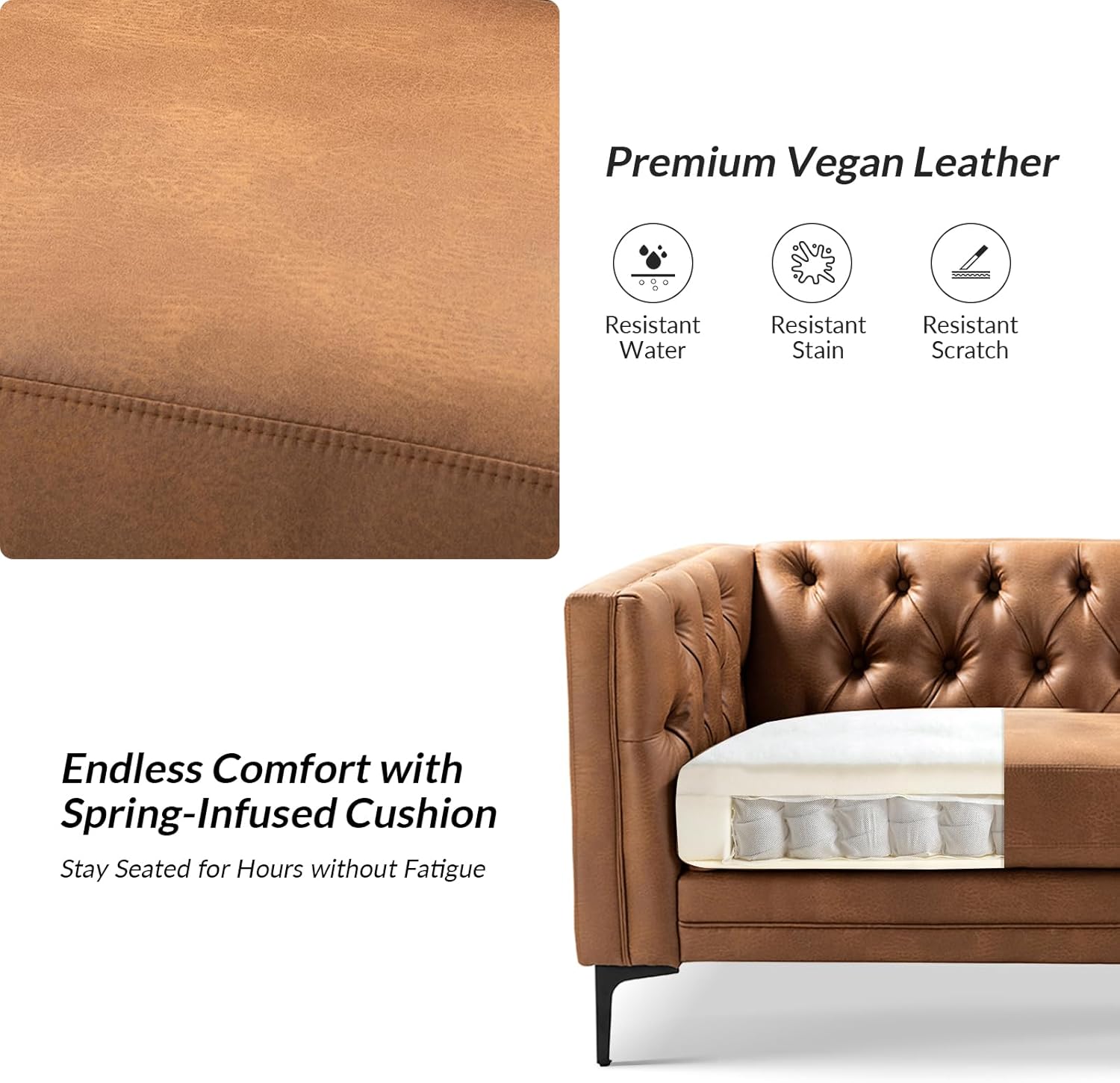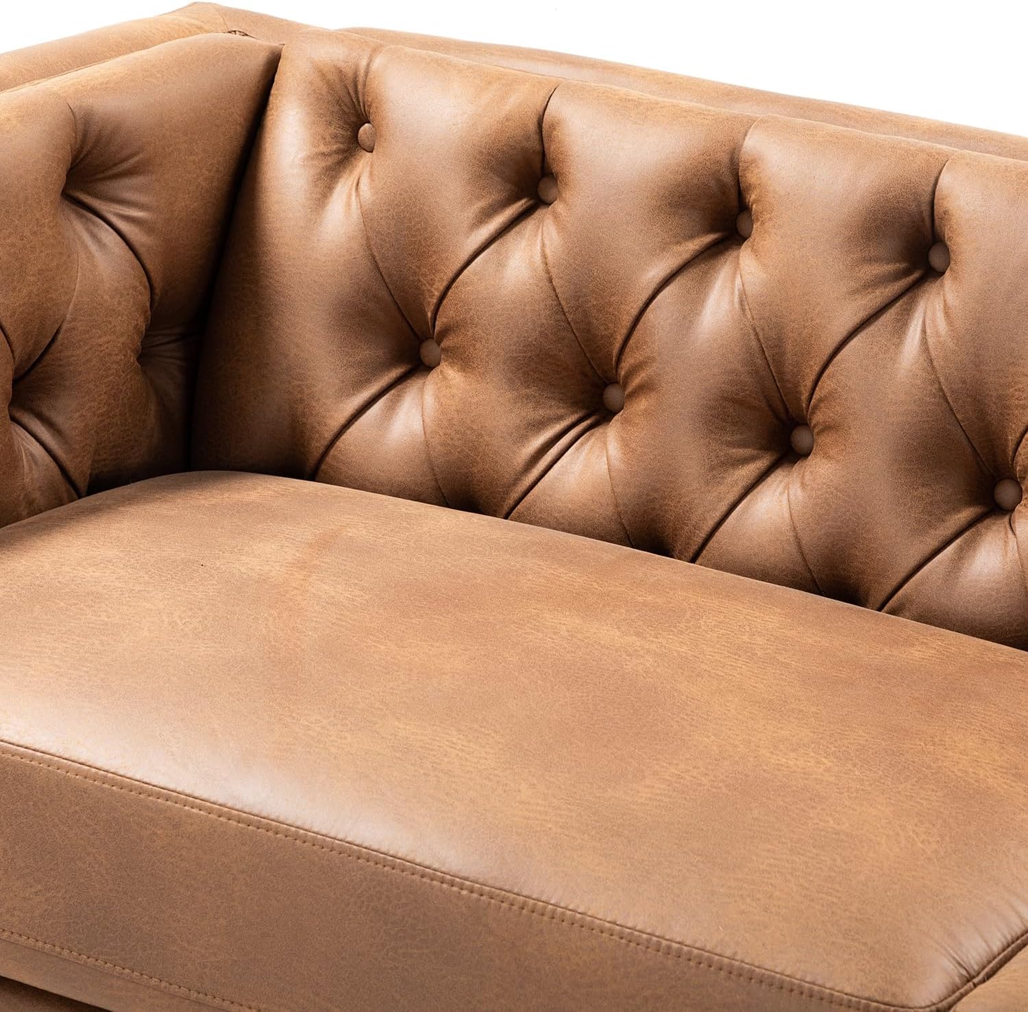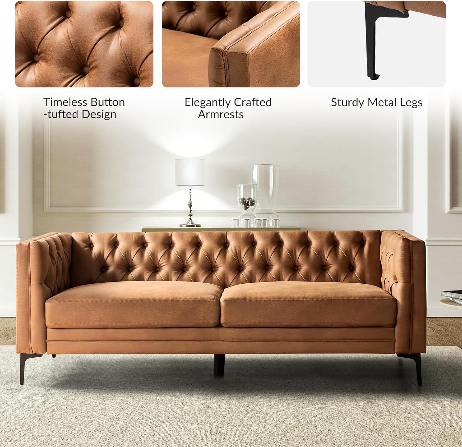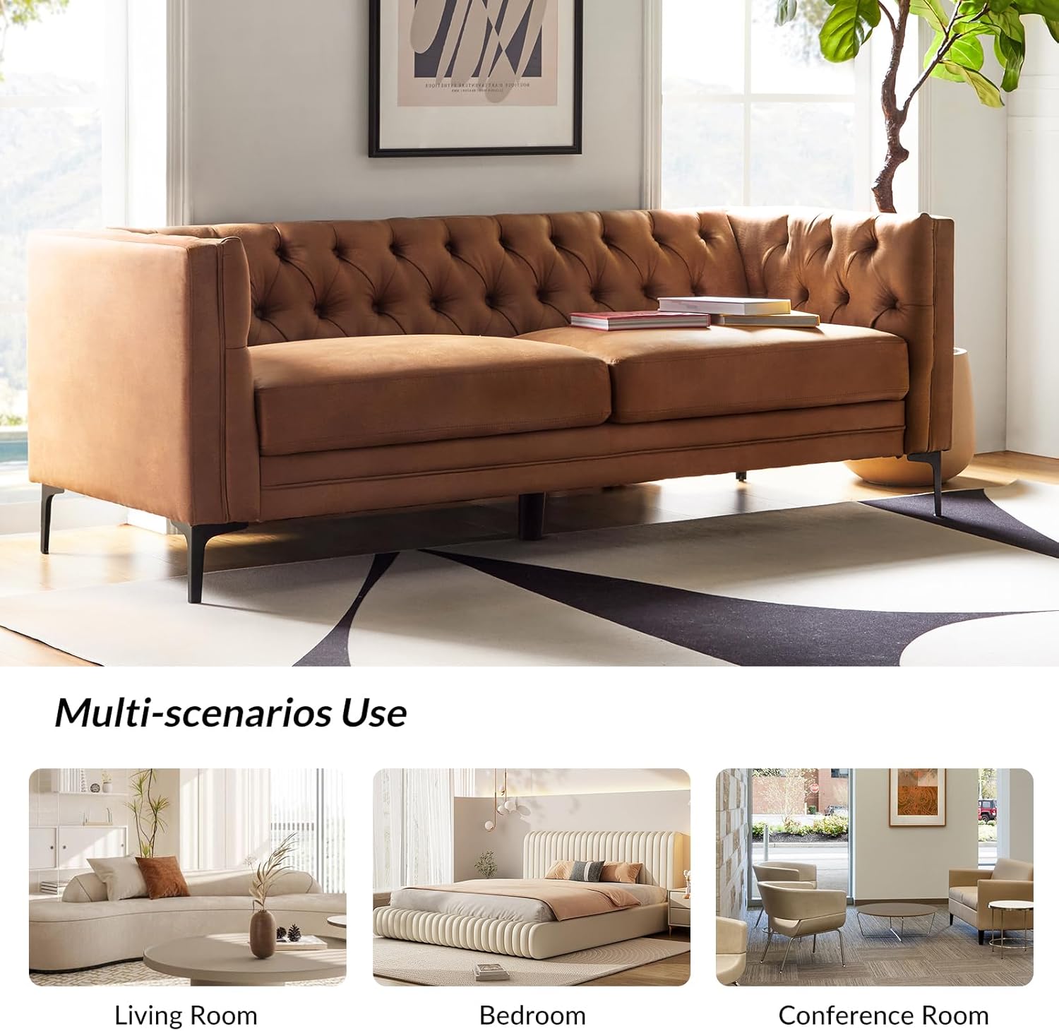 Mid Century Modern Style: Boasting a rectangular silhouette and chic style, this suede leather sofa can naturally integrate into various spaces, while delivering a mid century modern look by featuring classic button-tufted design and unique square armrests. No matter for watching TV or reading or just enjoying a peaceful moment, it always performs as what you expect.