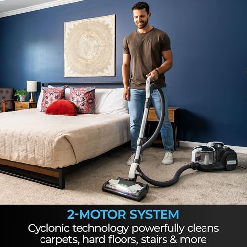 2-MOTOR SYSTEM: Cyclonic technology powerfully cleans carpets, hard floors, stairs, & more