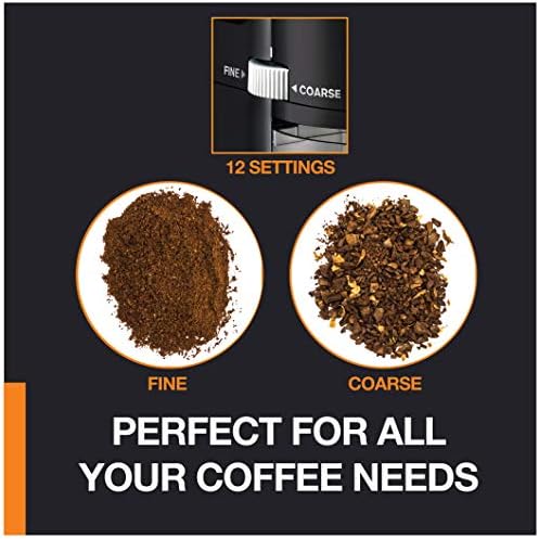Versatile Grinding: 12 precision settings from fine to coarse, perfect for various brewing methods including drip coffee, french press, espresso, pour over, and cold brew; customize your grind to extract optimal flavor from your coffee beans
