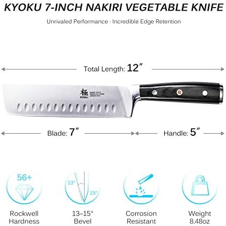 SUPERIOR STEEL – Manufactured with an ultra-sharp and cryogenically treated steel cutting core at HRC 56-58 hardness, this 7 in. Japanese style Nakiri vegetable knife boasts unrivaled performance and incredible edge retention