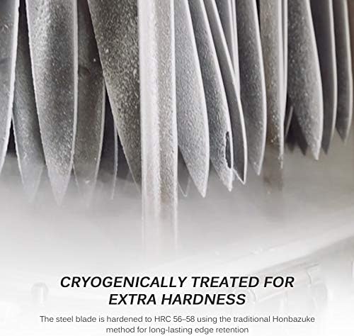 SHARP BLADE W/ HOLLOW EDGE DESIGN – The ruthlessly sharp edge is handcrafted by seasoned artisans to a mirror polish and painstakingly manufactured for incredible hardness, flexibility, and corrosion resistance