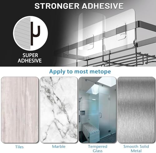 【What Will You Get? 】2 x Shower Caddy with Hooks, 2 x Adhesive, 1 x Manual. If you need more adhesives, please search for B0CPLQR4NW to purchase, If you encounter any minor issues with the product, such as adhesive detachment or missing accessories, please feel free to contact us for a refund or replacement.