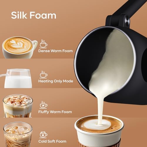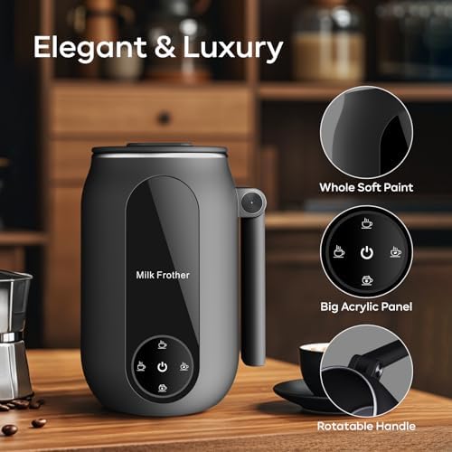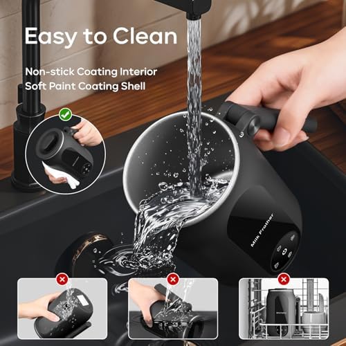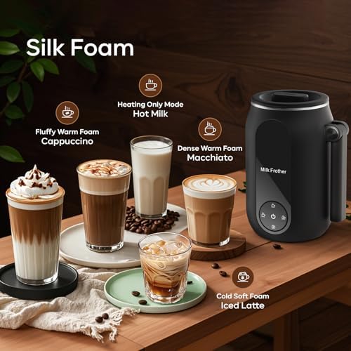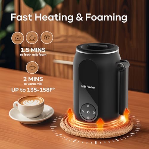 Quiet & Efficient: This electric milk frother operates quietly and only takes 90s-210s to make a dense foam without disturbing others, so that you enjoy a peaceful making experience at home or office. There will be an overheat protection during the production, and a beep when the production is finished, so you can walk away and do something else
