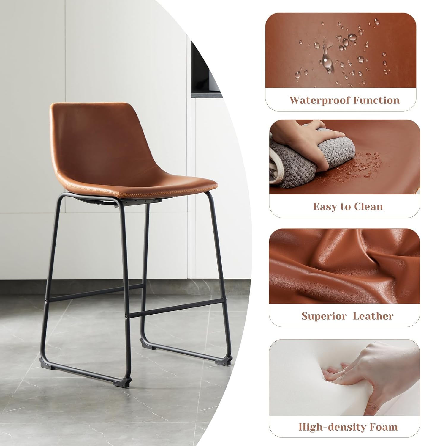 【Waterproof Leather】 Upholstered in premium crazy-horse faux PU leather, these bar stools set of 4 have a charming farmhouse and rustic tone. The waterproof leather is easy to clean and maintain, requiring only a damp towel to keep them looking brand new.