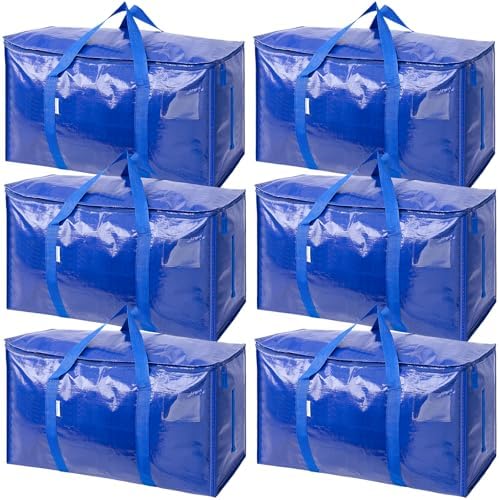 TICONN 6 Pack Extra Large Moving Bags with Zippers & Carrying Handles
