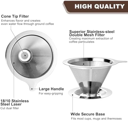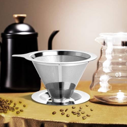 Upgraded Pour Over Coffee Filter, Coffee Dripper, Paperless Mess Stainless Steel