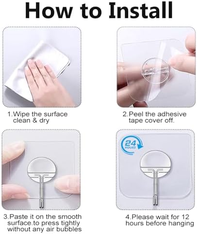 UTILITY HOOKS:Transparent design seamlessly blends with diverse home decor styles.Highly practical for home use. Compact and lightweight. Do not use on painted walls