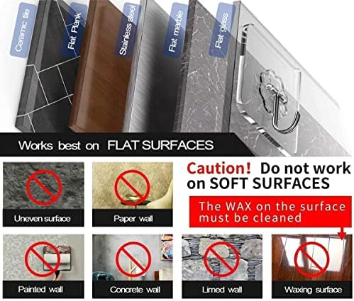 Wall Hooks for Hanging Heavy Duty: First wipe the wall clean, tear off the protective film and stick adhesive hooks heavy duty on the wall, press with your hands to discharge the air bubbles inside. You can wait for 2 hours before using the utility hooks, the effect is better, and the maximum weight can reach 22 pounds,however, it is not recommended to load overweight items for a long time, especially expensive items.